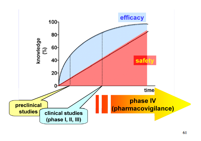 Quella in neretto è una balla colossale che va contro tutto ciò che viene insegnato a farmaceutica. Cercati un testo di farmaceutica o poi vediamo se quello che scrivono è corretto. Nella fase 4 i pazienti non saranno selezionati attentamente e non saranno sottoposti alla stessa attenzione che caratterizza gli studi pre-marketing. I pazienti potranno essere più giovani, più anziani e di sesso diverso: potranno avere più malattie concomitanti ed assumere più farmaci contemporaneamente; potrà trattarsi di donne gravide e così via. La sperimentazione clinica consta di 4 fasi e la quarta ha una durata indefinita. Maggiore è il tempo trascorso e maggiore sarà la Safety del farmaco. I dati raccolti però dovranno anche essere raccolti nel modo giusto e soprattutto bisogna volerli raccogliere nel modo giusto. Ti ricorda qualcosa:"guardi che lei ha gli attacchi di panico".