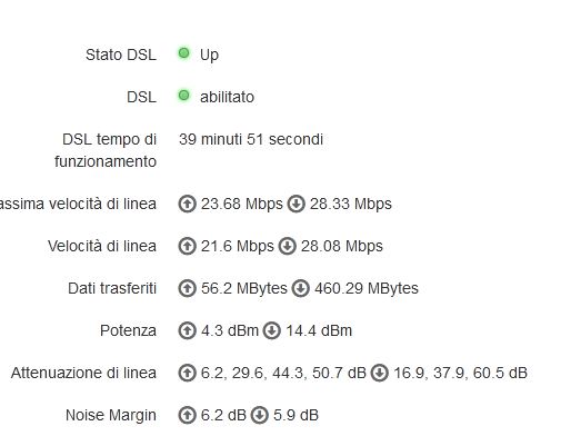 @gandrea: A 450-500 metri di distanza da database interno Tim, la EVDSL anche se non te l'avessero attivata (profilo 35b) lasciala perdere. Per il resto si, prova proprio a collegarlo dove entra il doppino in casa tua, così da escludere eventuali problemi e interferenze. Se rimane pressappoco uguale intorno ai 30 Mega in Download, dovrai aprire un ticket da app tim modem per navigazione lenta in quanto sei sotto la banda minima contrattuale (pari a 40 Mega in Download sulle 100 Mega e 50 Mega in Download sulle 200 Mega) e serve un tecnico in loco che verifichi il collegamento e la porta in armadio alla quale sei stato agganciato. C'è sicuramente qualche problema. 28 Mega alla tua distanza non esiste (se non appunto per colpa di qualche problema sulla tratta). Ovviamente attendi almeno 24h-48h circa affinché riconoscano lato loro l'upgrade completato, anche per quanto riguarda la fonia Voip.