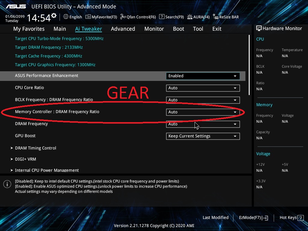 il problema allora forse ho capito qual'è, la mobo forse ti imposta gear1 e li hai problemi, fai cosi metti ratio 1:2 dove ti hanno fatto vedere e metti xmp 3200 se come penso lui va in ratio 1:1 forse scazza altri parametri e non ti va...cioè per me gear2 con l xmp o equivalente ti deve andare per forza