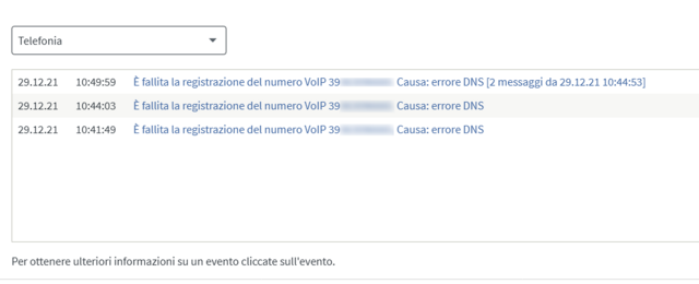 Noto questo messaggio : La telefonia via Internet con [numero] via [provider] è fallita. Causa: [messaggio]. Questo messaggio è un messaggio di evento del campo "Telefonia". Possibili cause: State effettuando una telefonata con un FRITZ!Box che non è abilitato per le chiamate in uscita internazionali. Il messaggio è stato inviato dal vostro provider di telefonia dopo che non è stato possibile stabilire una connessione telefonica tramite il vostro numero VoIP. Il numero che appare non corrisponde nè alla linea fissa nè al mio cellulare. Che cosa significa? Devo chiamare il 187(ho la fibra TIM)? |