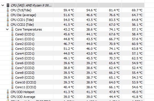 Welcome to the 5900 cpu Nei giochi vedrai che poi il gruppetto dei core che fanno parte del ccd1 saranno gli unici roventi. Questo perché questo genere di architettura ancora non è ottimizzato per bene...