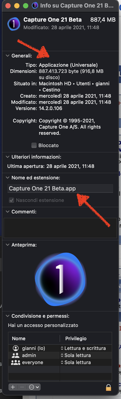 Qui ti metto l'esempio di Capture One, versione di una vecchia Beta che avevo nel cestino ![]() La stessa Apple chiama quelli che tu chiami programmi Applicazioni, sia come Tipo che come Suffisso Poi che questa usi le librerie Appkit invece delle UIKIt delle versione IOS/IpadOS - non Capture One, non ancora fino al 2022 ma in generale - è un altro discorso ed è la vera differenza. Il fatto che tu non trovi i Software Adobe o altro nel Mac App Store è solo per una questione di soldi...non di App/Programmi che sono la stessa cosa
