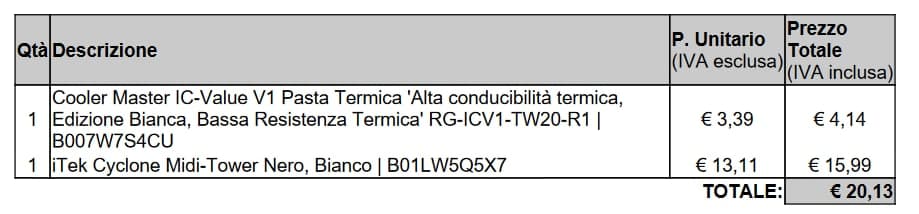 - gli altri a cui hai venduto hanno ricevuto i prodotti integri? bene per loro. io no. - ti ho chesto come mai l'ssd e l'hd hanno numero di ore di utilizzo (non scritture) superiori alle ore trascorse da quando sono stati comprati ad oggi. è una domanda, ed è matematica. - il prezzo lo abbiamo concordato prima. se mi avessi detto "ti vengo incontro col prezzo ma se qualcosa arriva rotto non voglio sentire storie" allora ok. ma a quel prezzo, dovevo ricevere le cose come concordato, non danneggiate. che le cose siano usate e non possono essere come nuove lo capisco da solo, ma per me una paratia che ha graffi grossi ed evidenti non è nei normali segni di usura, sarebbe stato meglio segnalarlo. ho detto solo questo. - ti ho detto che ieri sera avrei provato il pc e così ho fatto. stamattina ti ho mandato il messaggio... non vedo il problema. - non ho fatto nulla alle tue spalle, ti ho scritto chiaramente per due volte che avrei allora chiesto parere ai mod visto che tu insistevi che il pacco era adeguato. - ho chiesto ai mod di valutare se è giusto fare un rimborso ed eventualmente di quantificarlo perchè non mi risulta che l'itek cyclone costi 15€ nuovo, quindi ho chiesto un parere imparziale. anche perchè la valutazione si fa sul prezzo più basso attualmente disponibile in rete tolta l'iva. tutto qui. - si, 1+1 fa 2. il mod dice che l'imballo è inadeguato. non ha interesse a dire diversamente. ma se per te è adeguato, amen. detto questo, preferisco chiudere qui la vicenda. il mod si è espresso sull'inadeguatezza dell'imballo. se vuoi rimborsare una cifra, ma che sia equa, hai la mia email per fare un rimborso paypal, altrimenti va bene lo stesso. Nessuno dei due si arricchirà dagli esiti di questa vicenda. Saluti |
