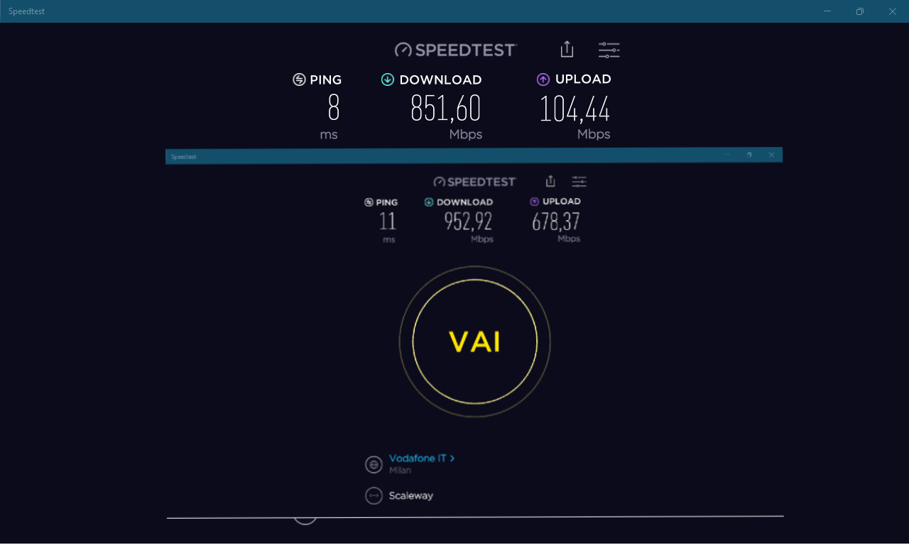 Uno speedtest normale verso Milano potrebbe avere all'incirca lo stesso ping degli altri Operatori e non essere notevolmente più alto. |