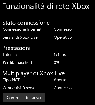 dubito che su xbox live cambi qualcosa avere un ping di 0/4/8 o 40 dato che il test di connessione a xbox live ha questo risultato ![]() ps: il mio ping su server di milano è 7/8 |