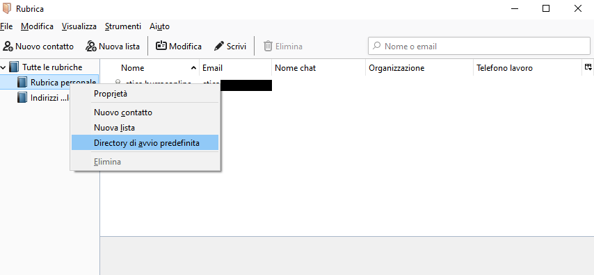 Per avere quella schermata basta aprire la rubrica. Se clicco su rubrica personale come te, sulla destra rimane vuoto, non c'è nulla. Se clicco col dx, ho le tue opzioni, posso abilitare directory di avvio predefinita. Se non c'è un'opzione o un comando per scaricare la rubrica online, proverò a rifare la procedura da zero. Dovrei cancellare l'account? Beh, essendo il portable, alla fine posso rilanciare TB da una nuova cartella, immagino rifarà tutto da zero in una nuova posizione. Quando avrò tempo riproverò.