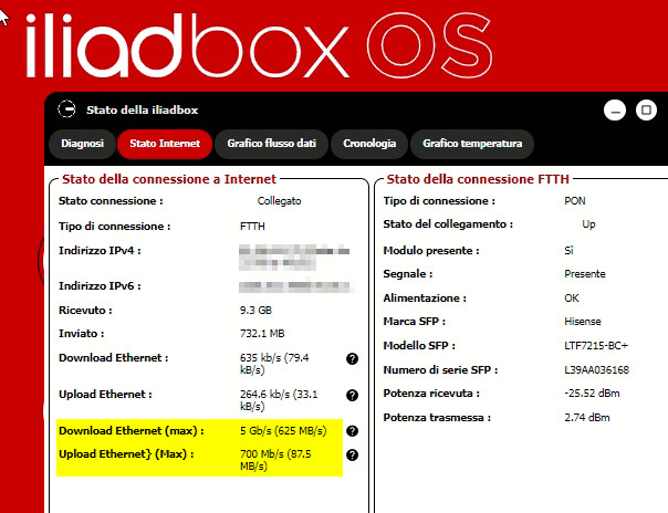 @tati29268: Il profilo 1000/300 viene fornito da Iliad e Sky per evidenti ed ovvi motivi di limiti infrastrutturali della ex rete Metroweb presente in diverse zone di Torino città, Bologna città e Milano città. Nel resto d'Italia dove non vi è tale limite, viene installato OLT proprietario in centrale (come Sky), pertanto Iliad offre il profilo 5 Gbps/700 Megabit. È dunque il tuo caso ad Udine.