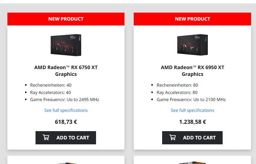 550pz sia per le 6950XT che per 6750XT reference sul sito AMD