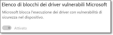 Grazie alle tue info (opzione 4) e a qualche ora di sonno persa, mi sono fatto una cultura su dove stanare certi drivers. Ebbene, alla fine, li ho scovati e cancellati, tanto, non servivano apparentemente a nulla, tutto funziona alla perfezione. Come quello che smonta e rimonta l'auto e poi si accorge che gli avanzano dei pezzi ma nonostante tutto, l'auto funziona. A quel punto: "MIRACOLO" l'isolamento core si attiva alla perfezione, ebbene, mi sono sentito soddisfatto e felice come un bambino che a Natale scarta i regali. Quando già assaporavo di poter andare a godere il meritato riposo, faccio un riavvio per essere sicuro che il tutto sia riproducibile all'infinito. Ecco, come spesso accade in informatica, l'imprevisto era in agguato. Riavviando, quando windows 11 è riapparso, PATATRAC in mezzo allo schermo una bella finestra di ALERT che mi informava circa l'incompatibilità tra l'applicazione ASUS Ai Suite v. 3 e la Memory Integrity. Oltretutto, non lasciava scampo, solamente 2 opzioni: off oppure on alla memory integrity. OFF = Ai Suite 3 funzionava ma si disattivava l'Isolamento core. ON = Ai Suite 3 KO, ma, riprendeva a funzionare L'isolamento core. Quindi ....... Core o Ai Suite ? Questo è il problema. Come in tutte le cose, per ora, ho raccolto gli aspetti positivi e cioè: 1) Ho imparato qualcosa in più, in questo settore non si finisce mai di imparare. 2) Ho cancellato i drivers introvabili in System32\driver, erano in System32\DRIVESTORE, maledetti. 3) Ho visto funzionare l'isolamento core e so che adesso posso attivarlo quando voglio, rinunciando a Ai Suite 3. Bene, ora il mio prossimo obiettivo personale è far convivere Ai Suite 3 con l'isolamento core attivo. Non so ancora da che parte cominciare, pertanto, ogni TUO suggerimento sarà il BENVENUTO. Grazie per il supporto e come puoi vedere con le tue info ho acceso lo switch: