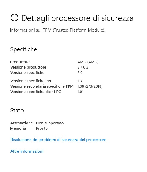 Si, ma usando il "modulo" di AMD mi dice che l'Attestazione non è pronta, quindi da errore, mentre con questo nuovo TPM module l'errore è sparito.