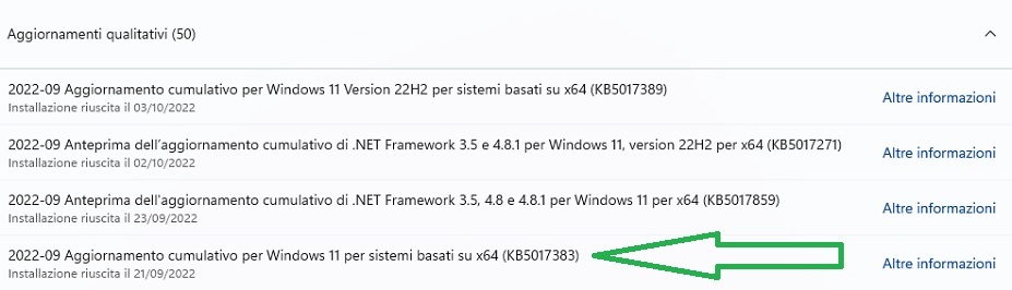 Se invece vuoi installarlo, lo puoi fare anche a mano, scaricando il pacchetto da qui: https://www.catalog.update.microsoft...px?q=KB5017383 Dopo l'installazione ti scomparirà l'errore dalle impostazioni windows update. |