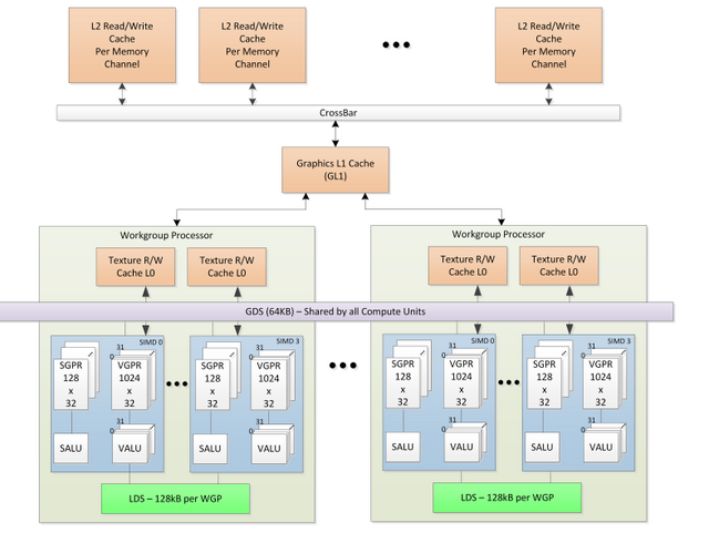 Al momento non si conosce nulla sulle modifiche microarchitetturale, ne di ray, ne tanto meno di prezzi e fasce cut definitive. Come la 7700xt. L'unico fattore da cui partire è un raggruppamento dei DCU, ora WGP quad CU. Questo migliora tutti gli accessi, dai registri, all'accesso LDS, alle texture cache e alla L1, accessibile tramite un' unico ciclo. Una sorta di snellimento. ![]()