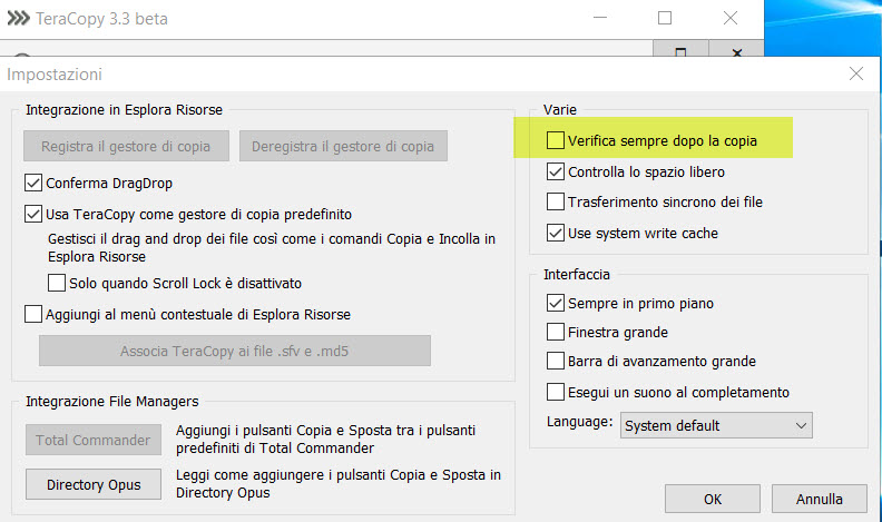 Teracopy tra velocità di esecuzione e verifica della copia fatta potrebbe interessarmi, anche se non come sostituto di un programma di Backup, a meno che non sia capace di fare anche i bk incrementale o differenziale, cosa che non credo. Ma facendo la copia mantiene le date originali? Sia dei file che delle cartelle? Grazie. |