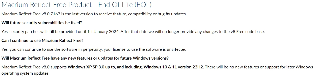 C'è da dire che da questa pagina: https://www.macrium.com/product-supp...nd-of-life-eol non si capisce se ci sarà una versione 9 free, e spero che ci sia. |