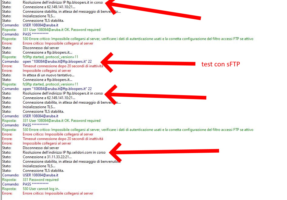 qualcuno ha problemi con server FTP esterni? A me è da metà ottobre circa che non riesco più ad accedere ai server FTP esterni. Avevo pensato di aver fatto casino io con la mia configurazione dell'iliadbox quindi sono stato buono fino a stamattina dove ho fatto infinite prove, fino a riconfigurare l'iliadbox con parametri di fabbrica ed ancora non va. Da segnalare che non ho dubbi è la connessione di iliad (oppure la sua iliadbox, ero infatti indeciso se postarlo qua o nell'altra discussione) perchè lo stesso identico computer con tutte le stesse identiche impostazioni (anche del client FTP, uso filezilla ma ne ho provati 1000) non funziona quando connesso alla FTTH di iliad mentre funziona al primo colpo se lo attacco (per test) ad un thietering via cellulare. Avevo aperto anche una chiamata al fornitore del server FTP che mi conferma non ci sono problemi (in effetti non solo su di lui ci accedo se uno thiethering ma è anche vero il contrario: anche gli altri FTP server pubblici non mi vanno se passo da iliad FTTH, mentre con lo stesso computer o cellulare funzionano se uso altra connessione). Addirittura ora quando devo caricare roba su FTP mi collego da remoto al pc di mia mamma (che vive in altra casa ed è in ascolto ed acceso con teamviewer, porto i file di la' e poi da la' mi collego ai server online ftp dove caricare... il bello è che mia mamma ha ILIAD FTTH!). Il mio sospetto è che sul mio traffico, ILIAD abbia cambiato qualcosa, anche perchè in concomitanza con quel problema anche STEAM mi diceva non riusciva a sincronizzare i miei dati (me l'ha detto per qualche giorno, poi l'avviso è sparito). Ma che problemi da' il client? 530 Errore critico: Impossibile collegarsi al server, verificare i dati di autenticazione usati e la corretta configurazione del filtro accessi FTP se attivo ho provato vari settaggi di FTP e sFTP ma non se ne esce mai, a volte mi dice di accettare il certificato, ma poi la sostanza non cambia (ricordo che lo stesso identico computer con lo stesso identico programma ma passando per altra connessione internet va al primo colpo): ![]() E se volete spararvi il log: https://www.selidori.com/_transito/2...ba_ftp_err.txt NOTA: anche computer della stessa rete si comportano uguali. Addirittura il cellulare android. Ho un un'app (CX FILE EXPLORER) che si collega anche in FTP. Bene, se il cellulare è collegato alla wifi generata dall'iliadbox non si collega ad FTP. Lo stesso cellulare, stessa app, stesso link, se disattivo il wifi e vado in 4G, si collega al primo colpo. NOTA: se ve lo chiedere come range di porte ho da 32768 a 49151, ma questo non dovrebbe dire niente, visto che la richiesta parte da dentro, quindi dovrebbe essere iliadbox che si preoccupa di gestire la mappatura porte, in effetti così com'era da marzo (a quando ho iliad) a metà ottobre è sempre andato tutto...