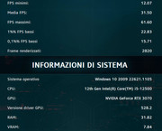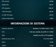 3070 vision OC VS Arc 770 16 gb. Risoluzione 1440 Driver ARC : 4091 Driver nVidia : 528.2 CPU: Intel 12500 Settaggio ULTRA Risultati SENZA RT VS ![]() Con RT VS ![]() Direi che ARC si comporta benone, è praticamente allineata alla 3070 senza RT, si avvicina molto con RT risultando superiore nei minimi e pari nei medi. Vediamo con i prossimi driver Con ARC gira fluidissimo e non perde un colpo, ram circa 10 giga occupati.