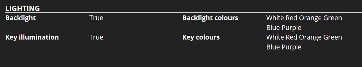 In genere con Key illumination si intende un led per tasto, posto sul PCB, con backlighting si intende alcuni led, tipicamente sempre sul PCB ma non è detto, per illuminare lo sfondo dei e tra i tasti.