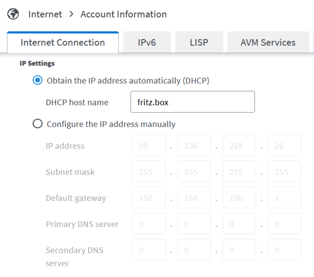 Al momento l'ip "internet" lo da il router a monte; volevo configurare il 7590 con un ip statico ma non sono riuscito a trovare questa impostazione nei menu. 'E' possibile farlo o devo a forza dare l'ip dal router a monte?