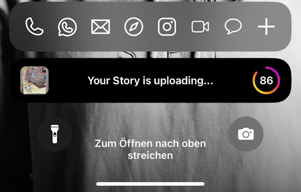 ![]() Live Activities (Attività in tempo reale) di iOS 16 in azione su Instagram Upload di una Storia... ![]()