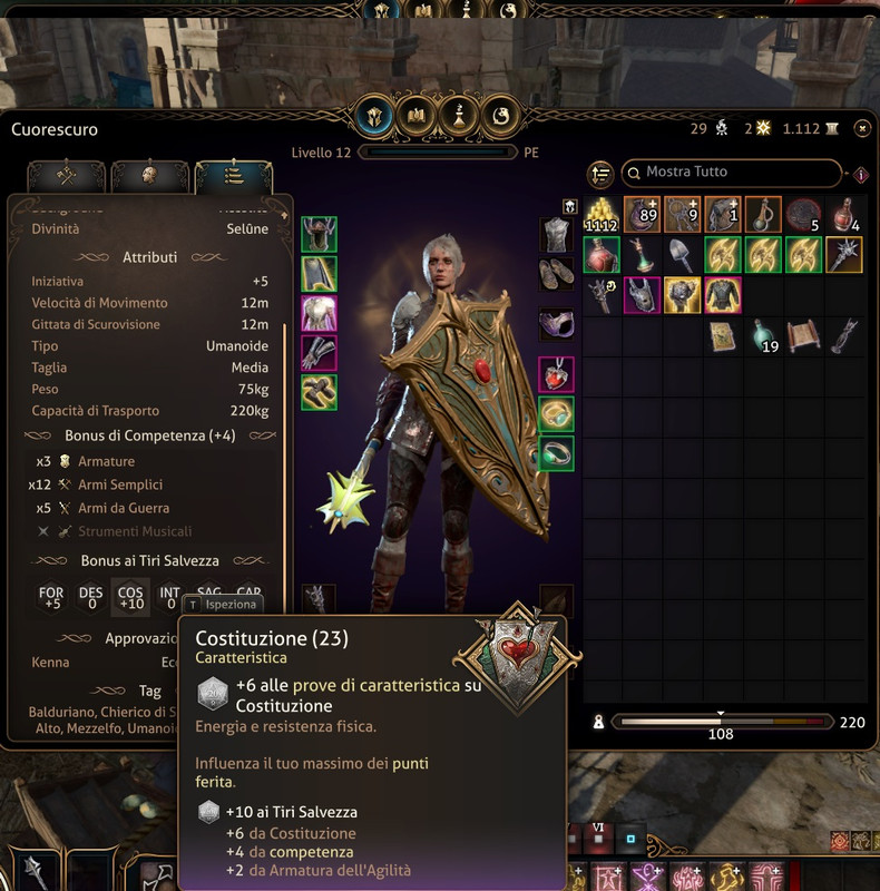 so che dopo un po' si aggiorna, non so se basta cambiare area, ricaricare, o altro...però so che +12 l'avevo visto (e togliendo l'armatura non diventava +10) Poi ho cambiato armatura Ho provato adesso anche con degli stivali che ha Wyll (+1 TS Carisma) e non toglie il bonus se tolgo gli stivali Ultima modifica di TheInvoker : 23-09-2023 alle 11:37. |