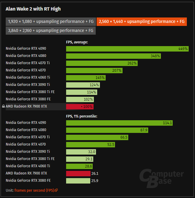 Colgo l'occasione per riproporre l'affarone (per JHH) della 70 liscia : ![]() ricordo controller SCSI molto più complessi AMD nel contempo vende ad un centozzo meno la 7800 XT : ![]() con più VRAM, bus più largo, maggior TDP, più silicio (anche se in rapporto inferiore a 7900XT/4070Ti), mediamente superiore alla 4070 col 3D "liscio". Ma appena attivi la wunderwaffen 1 verde : ![]() sbam, 4070 +30% vs 7800XT, addirittura sopra la 7900XT. EMa il vero shock arriva con la wunderwaffen 2, RT+PT con FG attivo, risbam : ![]() 7800 XT spedita nell'iperspazio e 7900XTX che va la metà della 4070. Mi chiedo se CP2077 e AW2 non siano di fatto strumenti di marketing dei verdi remunerati da JHH, ma c'è anche da notare che questi games sono casualmente quelli preferiti dal 90% dei possessori di 4080/4090 Ovviamente qui i fan verdi carrozzati urlano a gran voce che RT+PT sono assolutamente indinspensabili, il vero futuro del videogaming, senza è tutto tempo perso, mentre il versante rosso dissente e confuta oltresì qualità del DLSS e la validità dei numeri del FG, per non parlare del LAG aggiunto. Un bel cinema insomma