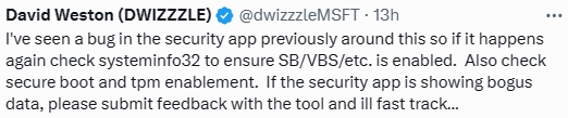 Di cosa sto parlando?? Fondamentalmente del nulla visto che è tutto regolarmente in essere per quanto il 'motore' chiamato a interpretare certi discorsi (ovvero la sezione Sicurezza di windows del menu impostazioni) veda tutt'altro restituendo talvolta dati sballati. Per entrare ancor più nello specifico, parte almeno della causa si nasconde nella comunicazione tra l'OS e il TPM determinando, tra le altre cose, l'apparente assenza di quest'ultimo. (A suo tempo aprii una discussione dedicata, se volete scorrerla il link è QUESTO) Bene, perché quindi OGGI ritorno su questo discorso?? Banalmente, perché ho visto poco fa su twitter che una persona che ha un certo ruolo in campo informatico si è imbattuto nel medesimo inghippo chiedendo lumi direttamente alla fonte (e fin qui, fondamentalmente, nulla di strano visto che la possibilità di mandare un tweet è concessa a tutti)...se non che LUI ha avuto ASCOLTO (e qui torna il famoso concetto espresso dal Marchese del Grillo secondo cui possono generarsi effetti diversi a seconda di chi compie la medesima azione )Stringendo, quindi: l'hardware (APPARENTEMENTE) non supporta determinate condizioni... ![]() che poi è pari pari a questo (se avete letto la discussione linkata in precedenza, si parla della stessa cosa e, per l'appunto, poco fa ho affrontato il solito "svagellamento" per quanto abbia dimenticato di catturare la scritta riportata sopra): ![]() Però al tizio, come dicevo e in parte anche comprensibilmente, è stata riservata una risposta: ![]() Il lato positivo cmq esiste. Siccome il problema lo patisce anche qualcuno che conta, se lo risolvono, lo risolvono per tutti Ultima modifica di LL1 : 16-11-2023 alle 11:51. |