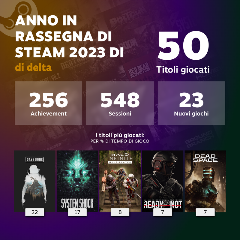 questo il mio 2023: ![]() con CP2077 (per quanto mi riguarda cd projekt red a mai più) e Armored Core mollati. Il mio gioco preferito del 2023 è un remake di un gioco del 94.