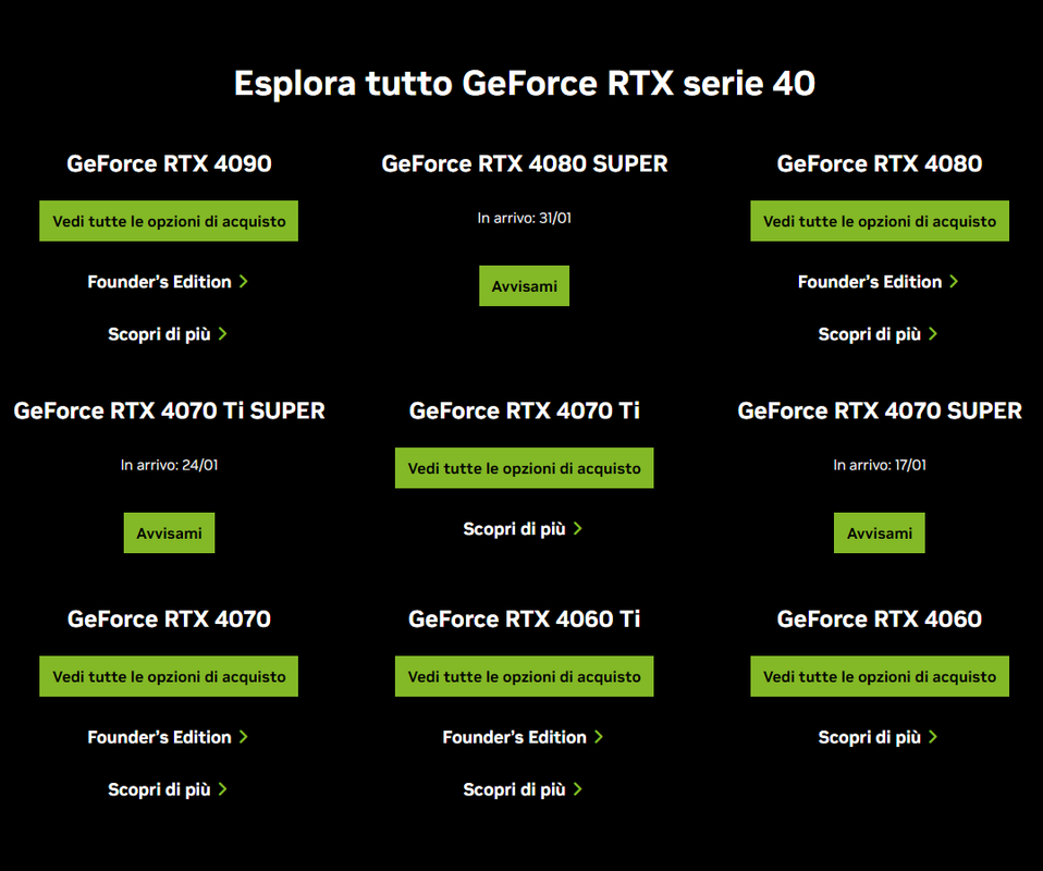 Salve a tutti ho visto che la 4080 super uscirà il 31 Gennaio sul sito nvidia a circa 1100 euro. Cercando di sfidare la sorte, il sito di vendita diretto è il solito LDCL?