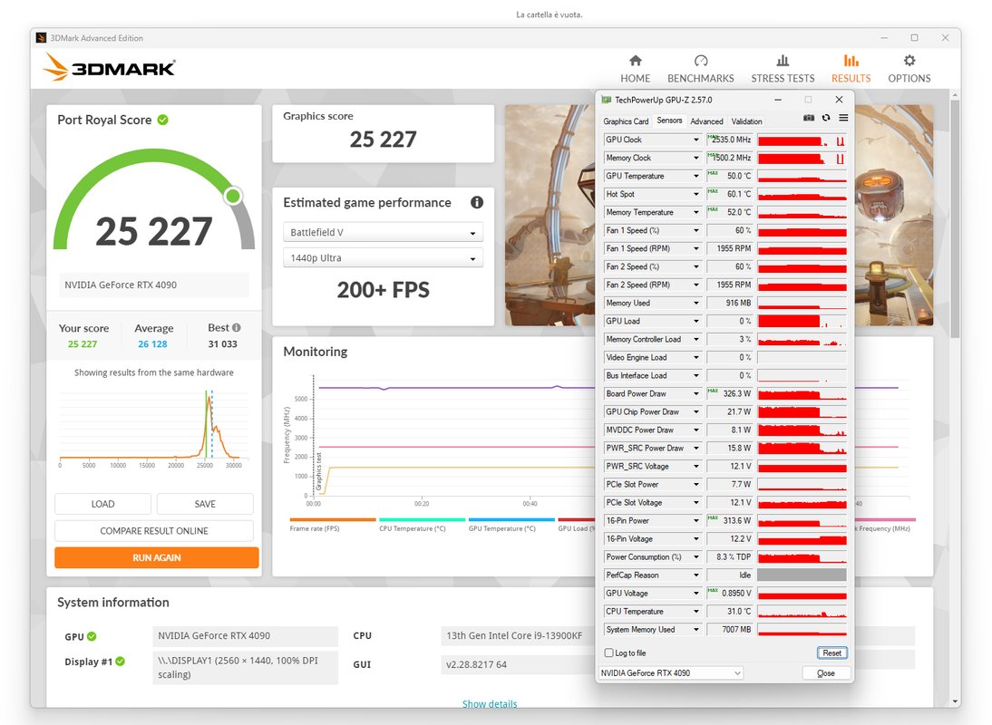 per quanto riguarda il clock quello è il mio daily, perchè per il mio utilizzo gaming e non sono soddisfatto delle prestazioni e il rumore rimane veramente basso; ad ogni modo ho creato altri due profili, uno in undervolt ma leggermente superiore allo atock, e l'altro con la frequenze massime che posso raggiungere col PL @ default (450w). 2775mhz 2895mhz ![]() ad ogni modo in game queste variazioni si traducono in una manciata di fps in meno, e dato che solitamente la 4090 ne produce a vagonate preferisco rimanere col mio daily a 2535mhz. a parte differenze che possono esserci tra un esemplare e l'altro anche della stessa marca, in questo caso giocano un ruolo fondamentale il case, le ventole installate, il regime di rotazione delle stesse, etc....per dire, in gaming le ventole del mio pc girano intorno a 800rpm |