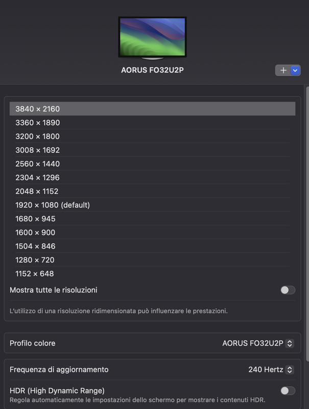 ![]() la cosa bella è che macos lo ha già riconosciuto a 240Hz in ![]() adesso provo su windows: SPETTACOLARE. davvero SPETTACOLARE. Oled ti si apre una finestra, non so come spiegarvelo. L'audio con il dac sabre è superbo, sembra di aver cambiato impianto.
