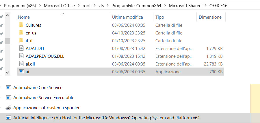 Ce l'ho anche in questo PC con Office Professional Plus 2019, nella stessa posizione ma con data 7 giugno, questo dipende da quando si è aggiornato immagino. Però aprendo Word, Power Point o Publisher non si carica in memoria... boh |