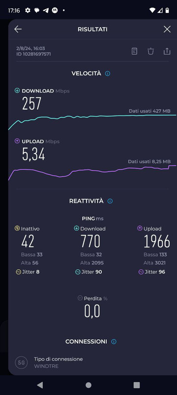 Oggi mi è arrivato il moto g54 5g e così ho fatto dei test in 5g, devo ammettere che sono rimasto piacevolmente sorpreso dei risultati, considerando le condizioni che definire estreme è piuttosto "riduttivo". Peccato che non ci sia ancora una postemobile casa web in 5g