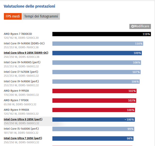 Un 9950x invece abbastanza in linea con il 285k , se la giocano, ma sono sempre abbastanza vicini. Per un prodotto nuovo ci si poteva aspettare di più, ma non mi sembra tutto sto dramma. il problema è principalmente la mancanza di futuro... non ci vedo quindi molto senso.