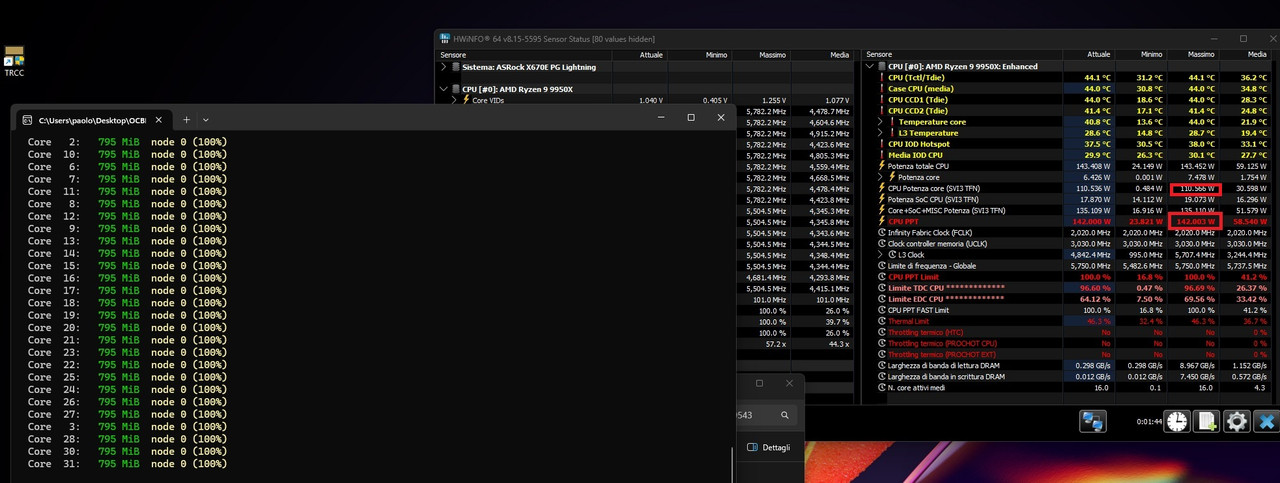 Se guardi il mio screen, che utilizzo la iGPU integrata ed arrivo a 75W di SOC, con il 9950X a def (200W PPT), se fosse come dici tu, avrei un 9950X limitato a 125W? Anche lato alimentazione, le fasi del SOC e dei Chiplet sono disgiunte... infatti anche HWinfo divide i valori, ed il PPT massimo dei core è solamente per i chiplet (core + L3), addirittura anche l'IF sarebbe esclusa, credo. Io con PBO illimitato arrivo a 300W di core. Ma AMD deve per forza fare così... con i prox HALO, con una iGPU da 40CU, in accoppiata ad un X16, non può assolutamente accorpare SOC e CORE nel consumo max... segherebbe la prestazione core. Se non sei convinto, posso impostare il 9950X a 105W TDP e far arrivare i core a 142W massimi del TDP e tenere i 17W del soc MC + 40W dell'iGPU a parte. Quote: