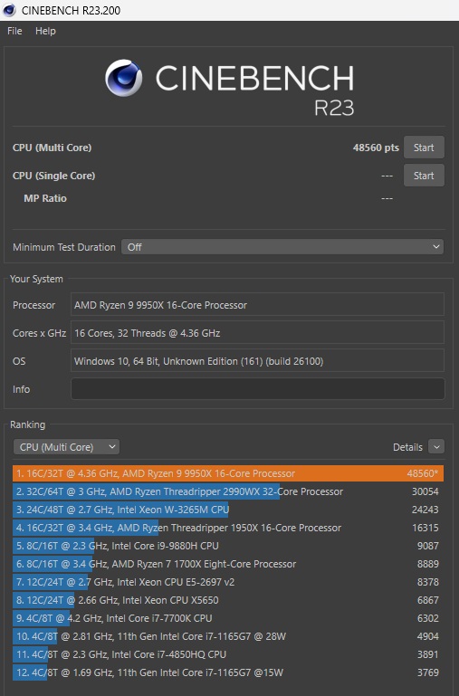 9950X PBO 1X CO -33 Override +100 CPU-Z RS/DU 930/18.563 - CB23-2339 - 47682 47728 -CB24 144 2508 - OCCT - V-RAY 53.994 - GeekBench 6.3 3563/22664 - TEST RS Y-Cruncher BKT - core 0-15 NPbench - CPU-Z 19207 - CB23 49265 - CB24 2593 |