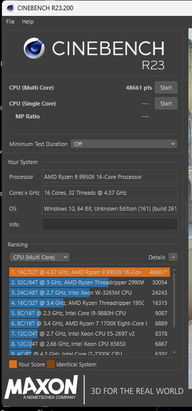 9950X PBO 1X CO -33 Override +100 CPU-Z RS/DU 930/18.563 - CB23-2339 - 47682 47728 -CB24 144 2508 - OCCT - V-RAY 53.994 - GeekBench 6.3 3563/22664 - TEST RS Y-Cruncher BKT - core 0-15 NPbench - CPU-Z 19207 - CB23 49265 - CB24 2593 |