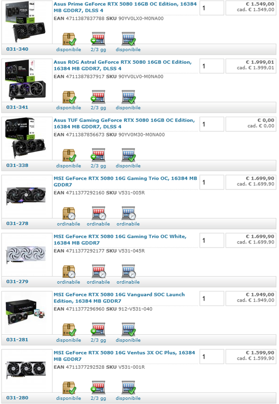 ritornando al prezzo emerso per la 5080 non credo che si discosterà molto da quello visto su amz. quelle poche che ci saranno verranno vendute a caro prezzo.