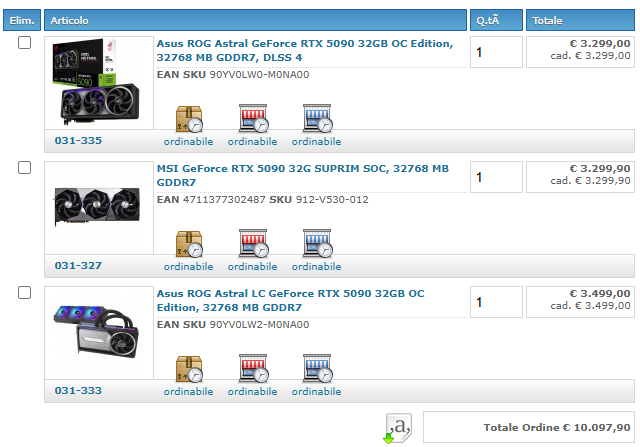 Quindi se qualcuno con una 4090 custom volesse fare l'upgrade, si troverebbe a spendere ALMENO 1500€ di differenza (per una 5090 pari custom).