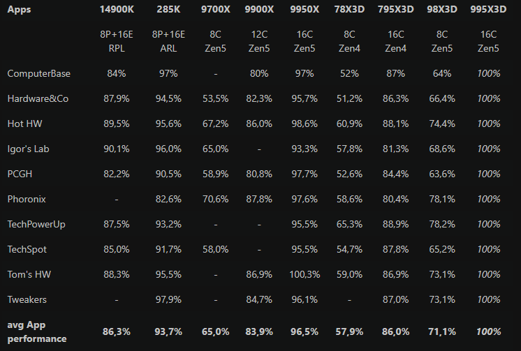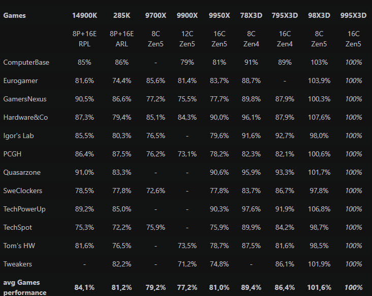ecco la media delle medie di tante recensioni online del 9950x3D