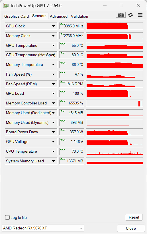 14600k standard prima di montare il 13700k --- 9070Xt Pulse Originals freq INFO "NB": .... RT OFF == DEFAULT SETTING... 4k Rt on - 12dx https://gravitymark.tellusim.com/rep...242b0f852bcfcd Score 28,016 Time 167.0 s FPS 167.7 Min / Max 93.8 / 244.1 4k Rt off - dx12 https://gravitymark.tellusim.com/rep...0f295048156356 Score 31,034 Time 167.0 s FPS 185.8 Min / Max 127.0 / 366.3 2k Rt on - 12dx https://gravitymark.tellusim.com/rep...9ea56c01af2f70 Score 44,827 Time 167.0 s FPS 268.4 Min / Max 156.9 / 350.1 4k Vulkan Rt on https://gravitymark.tellusim.com/rep...53323dc060f5d5 Score 29,118 Time 167.0 s FPS 174.3 Min / Max 93.5 / 259.2 4k vulkan Rt off https://gravitymark.tellusim.com/rep...3e5966df24dcde Score 29,529 Time 167.0 s FPS 176.8 Min / Max 127.2 / 354.3 Oc mode On 9070xt Pulse -140mv Pl10+ Mem 2750mhz Oc 4k Rt On -dx12 https://gravitymark.tellusim.com/rep...775ab3715bcf57 Score 30,224 Time 167.0 s FPS 181.0 Min / Max 99.3 / 260.9 4k Rt off -dx12 https://gravitymark.tellusim.com/rep...18e2f6ec769b20 Score 32,987 Time 167.0 s FPS 197.5 Min / Max 139.4 / 392.9 2k Rt on dx12 https://gravitymark.tellusim.com/rep...0eae5871392a29 Score 47,963 Time 167.0 s FPS 287.2 Min / Max 163.7 / 372.6 4k vulkan Rt on https://gravitymark.tellusim.com/rep...5ea31d881eaebe Score 30,601 Time 167.0 s FPS 183.2 Min / Max 100.8 / 266.1 4k vulkan Rt off https://gravitymark.tellusim.com/rep...bd38ac916fc53b Score 31,287 Time 167.0 s FPS 187.3 Min / Max 137.5 / 374.6 Freq e temp max rilevate in Original Mode