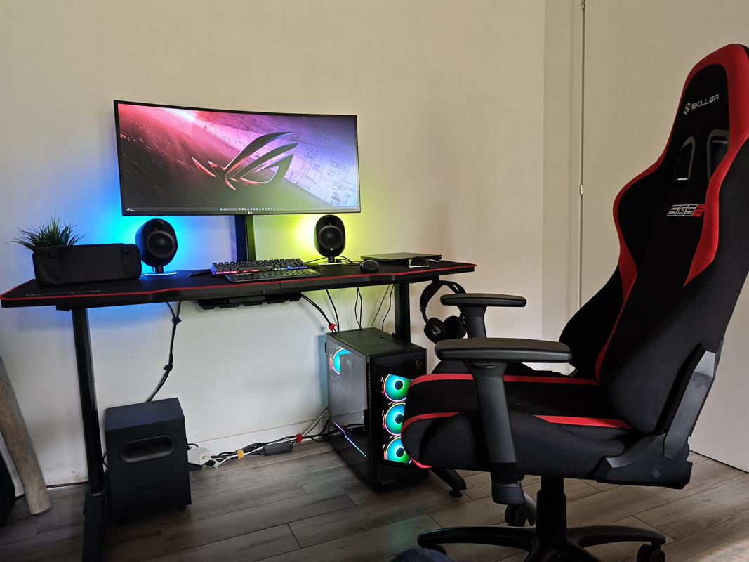 Tralasciando il fatto che pur non essendo monitor da studio sono a 2 vie e si sentono molto meglio delle logitech, meno tunz tunz e tutto più definito, le luci che creano sulla parete di notte non affaticano la vista, riducono la percezione del glow e sono comode perchè puoi impostare un timer di spegnimento se spegni il pc, quel minuto mi permette di andare a letto senza accendere la luce del comodino, poi de gustibus. Devo ancora fare una specie di zoccolino rimovibile per coprire i cavi a terra e far passare a destra cavo dvi e hub usb lungo la gamba della scrivania e a sinistra cavo cassa e cavo alimentatore monitor sempre lungo la gamba, comunque sono decentemente in ordine. Poi lavorando in smart working e considerando che se ci aggiungo le ore di cazzeggio e gioco sto 10 ore seduto davanti al pc pensavo di cambiare sedia e prendermi una Titan evo 2022 softwave black, le sedie da ufficio proprio non mi piacciono esteticamente.