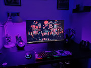 Ecco la mia postazione , forse abbastanza semplice ma volevo qulacosa di minimal.Il case l'ho messo per terra , meno rumore e i led delle ventole mi davano fastidio , volevo più spazio possibile sulla scrivania.