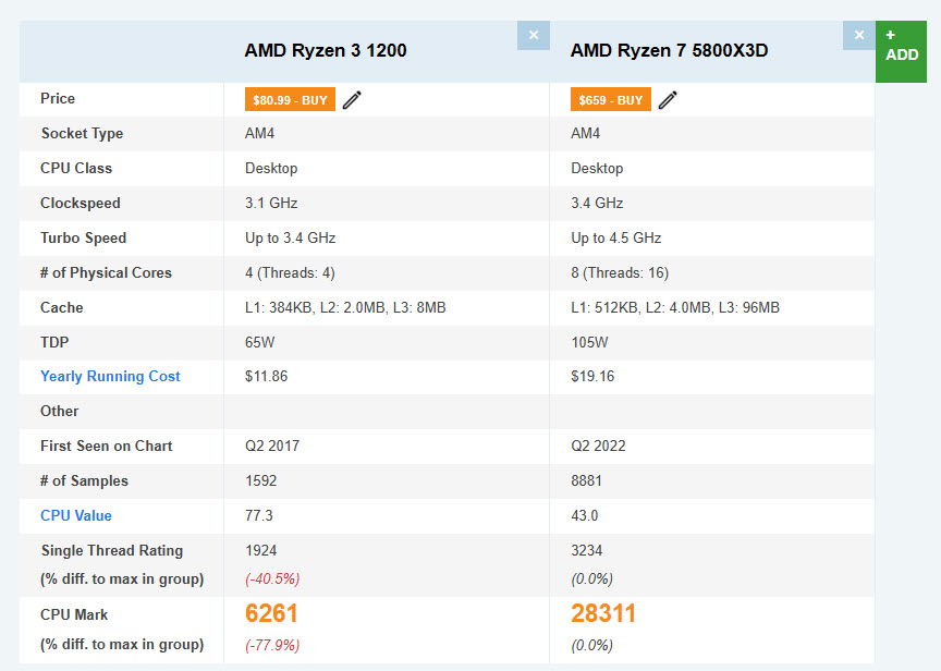 Ma quando c'è un +/- 20-25% in task specifici a cui darei maggior peso nell'uso reale per un tempo >70% dei casi, preferirei saperlo per orientarmi verso una piattaforma, CPU o un'altra. C'era una recensione o altro tipo di sito web che mostrava le performance normalizzate di una specifica CPU vs una serie di altre CPU, task specifici...ma non riesco più ad individuarlo.