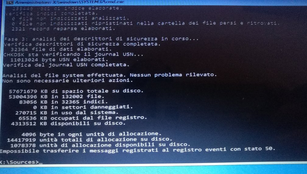 CrystalDisk ha restituito una diagnosi del disco di livello buono (non capisco perché, tra i vari parametri, indichi oltre 90 ore di accensione attuale, quando in realtà l'ho appena acceso). L'esecuzione del programma è durata poco. Ho quindi eseguito chkdsk da account user in Windows 7, ma è seguito l'avviso "Accesso negato. Privilegi insufficienti. Questa utilità deve essere eseguita tramite un account con privilegi elevati". Sono allora passato all'altro account di amministratore, ma ancora una volta l'operazione è stata negata per la medesima ragione. Non riesco proprio a capire. Metto di seguito lo schema riepilogativo di come si presenta il problema e le varie fasi dal momento in cui avvio il notebook. — Schermata Grub di Ubuntu -> seleziono Windows 10 — Schermata blu appare prima della schermata win10 con opzione win10-win7 — Riavvia automaticamente — Preparazione del ripristino automatico — Diagnostica del PC in corso — Ripristino automatico: il pc non è stato avviato correttamente. Scegli riavvia per avviare il PC, a volte questa operazione consente di risolvere il problema; puoi anche scegliere opzioni avanzate per provare a usare altre opzioni di ripristino del PC. La buona notizia è che almeno riesco ad accedere ai file della unità; ho anche sbloccato l'accesso agli utenti impostando la condivisione da Windows 7 alle rispettive directory di Windows 10. Mi piacerebbe eseguire i comandi dal prompt (ho usato chkdsk un sacco di volte, e non mi è mai capitata una cosa del genere fino ad ora) e soprattutto risolvere ripristinando l'avvio regolare del sistema. Ultima modifica di filipsnew : 05-11-2025 alle 08:45. |