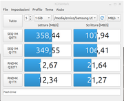 incredibile che tra le 2 samsung USB ,quella piccolissima e' piu performante della BAR lunga ! Forse piu recente come tecnologia interna vero ? PS : ma quanto spazio ci deve essere per fare il TEST ... con una chiavetta che era quasi piena , mi diceva appunto che NON era possibile fare il test . |