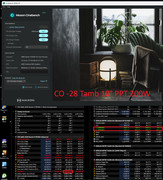 Io ho CO a -28 all core , pbo scalar a 1X PPT/TDC/EDC 250/210/280 Cpu boost clock +75Mhz Ram a 6400/30-38-40 1,45V FCLK 2133 Uclk/mem 1:1 per riuscire a tenerle stabili così devo tenere NB/soc a 1,285V VDDQ 1,45V VDDIO 1,45V Il mio picco massimo vcore arriva a 1,285-1,3V quando non ho la cpu al 100% e il chiplet non 3D arriva con poco carico a 5800MHz (mentre uso Photoshop o lavoro su Davinci Resolve) Con CB all-core sta a 1,125V (anche tu sei alto come picco massimo di Vcore: 1,376V ... molto alto)