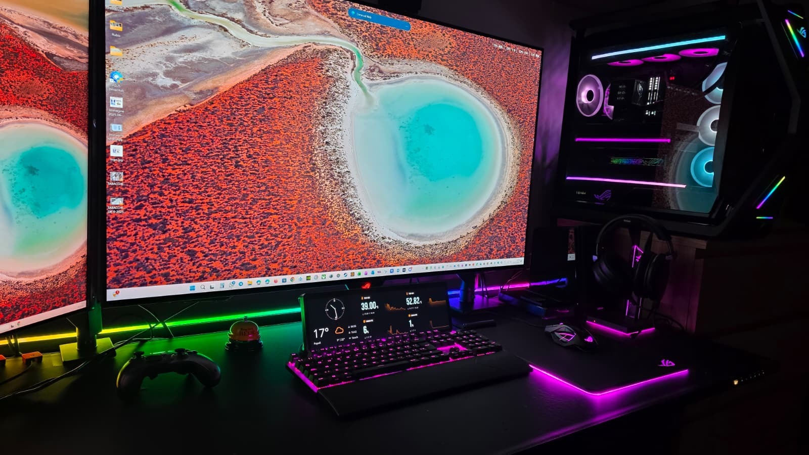 scusami non ho capito cosa intendi....sono entrambi 27, quello a sn è un ips a 144hz il principale un alienware oled 360hz, in effetti in verticale un 27 è forse troppo grande, ma comodissimo per certe cose