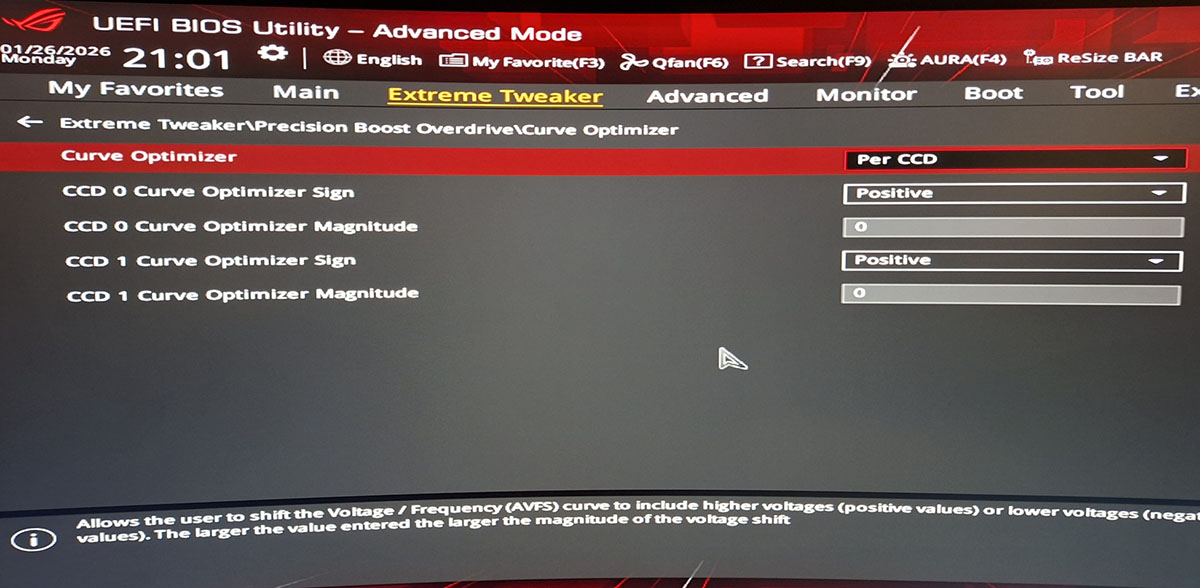 CPU Boot Clock Override: Enabled (Positive) Max CPU Boot Clock Override (+): 0 Curve Optimizer: All Cores All Core Curve Optimizer sign: Negative All Core Curve Optimizer Magnitude: 10 Con 20 il PC non si avvia proprio. Con 5 (ma mi sembra di capire che 5 non ne vale pena) e' leggermente piu' stabile, ma comunque in idle ogni tanto continua a riavviarsi. Mettendo All Core Curve Optimizer Magnitude: 0 il PC funziona perfettamente non si riavvia piu' in idle, ma se non erro, cosi' annullo l'OC, o sbaglio? Allego schermate. ![]() ![]() Per quanto riguarda la RAM, lascio 6200 30-36-36-72. Fatemi sottolineare che 2 settimane e' morto l'alimentatore che aveva 15 anni. Col vecchio alimentatore, a livello di RAM non riuscivo a scendere sotto 6200 34, col nuovo (in firma) invece arrivo a 30 senza nessun problema. A livello di CPU invece nessun miglioramento...