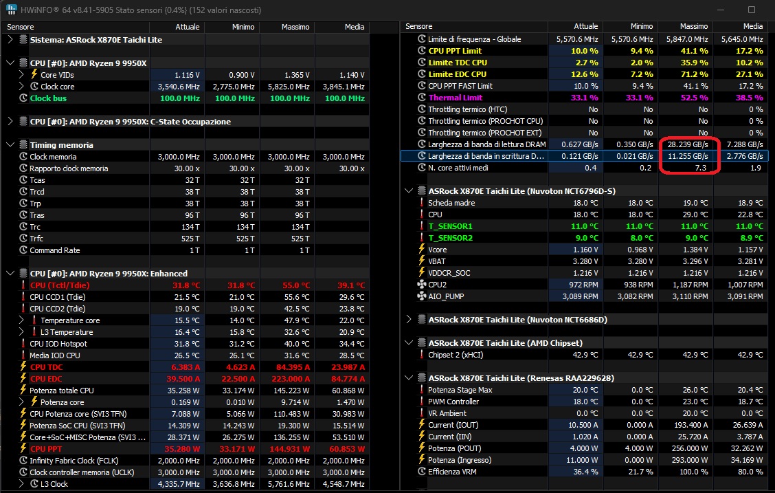 Ovviamente a me interessa il mio caso e posto le mie considerazioni... che sono soggettive al mio utilizzo e non oggettive. Questa è la mia situazione sul mio utilizzo effettivo con DDR5 EXPO 6000 CL32 e 9950X in OC RS/DU (PPT 353W/TDC 235A/EDC 313A) CO -25. Utilizzando il codec compreso all'interno della iGPU integrata. ![]() Non arrivo a 40.000GB/s di picco con conversioni 2K, a 4K la banda è inferiore, se la conversione la faccio via X86 la banda richiesta diminuisce circa del 40% (rispetto a X86 il codec è quasi veloce 2X, quindi estrapolo il valore per eccesso). Partiamo dal presupposto che il +70% di performances lato X86 difficilmente sarà replicato lato iGPU... al più ci sarà un affinamento, ma difficilmente corposo, visto che pare sarà basato sulla stessa RDNA... quindi se ora sono sui 40GB/s con la conversione via codec iGPU, con Zen6 sarò lì... al più mi ritroverò che facendo la conversione via X86, oggi con il 9950X vado la metà, domani con Zen6 X24 al più otterrei di performare via X86 uguale al codec iGPU. Poi ovvio, se facessi bench OC, ovviamente la DDR5 EXPO 6000 sarebbe penalizzante... ma (per me) la soluzione non sarebbe 400€ di differenza nell'acquisto DDR5 8000 e vendita DDR5 6000, ma spendere 150€ circa in un Zen6 X24 3D al posto del liscio. A me viene così... non ci vedo una tragedia a tenermi i dindi in tasca e conservare le DDR5 6000 CL 32 def... e comunque posso sempre occarle... 6200 CL32/6000 CL 28/6400 CL 34-36 funzionerebbero. Ma anche lato game... con un 3D la banda non è un problema... quindi molto meglio una latenza inferiore... meglio i CL32/30/28 delle DDR5 6000 che i CL 36-40 delle DDR5 7200-8000.
