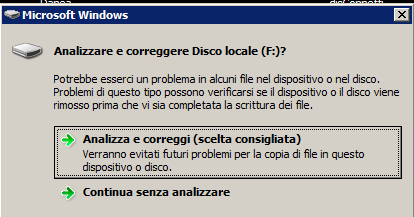Per risolvere vai su proprieta disco >> Strumenti >> Controlla